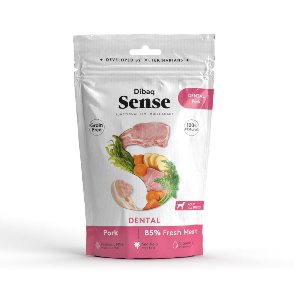 Dibaq Sense Dental Possu on puolikostea herkku, joka on valmistettu tuoreesta porsaanlihasta, perunasta ja merilevästä. Luonnolliset ainesosat auttavat ylläpitämään lemmikin hampaiden ja suun terveyttä. Monoproteiininen herkku kaikille aikuisille koirille, joka edistää suun terveyttä ja ehkäisee hammaskiven muodostumista.