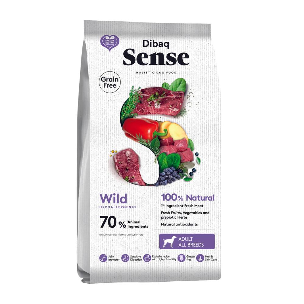 Dibaq Sense Wild Boar & Deer on laadukas, luonnollinen täysravinto, joka on kehitetty kaikenrotuisille aikuisille koirille.