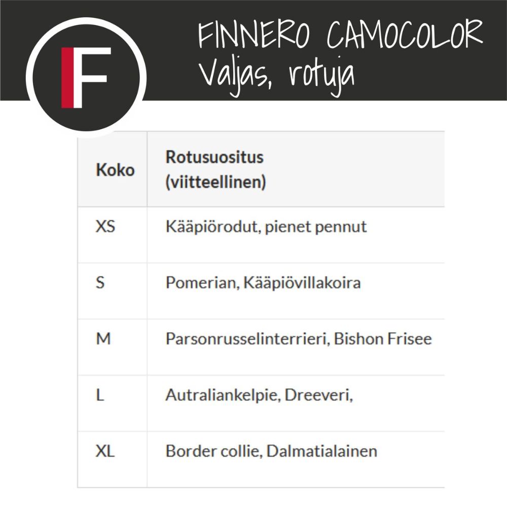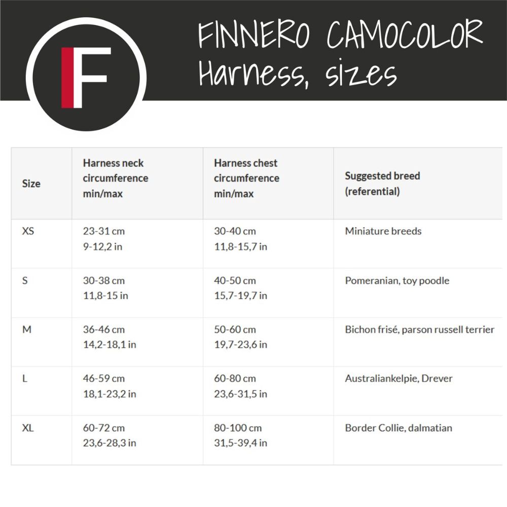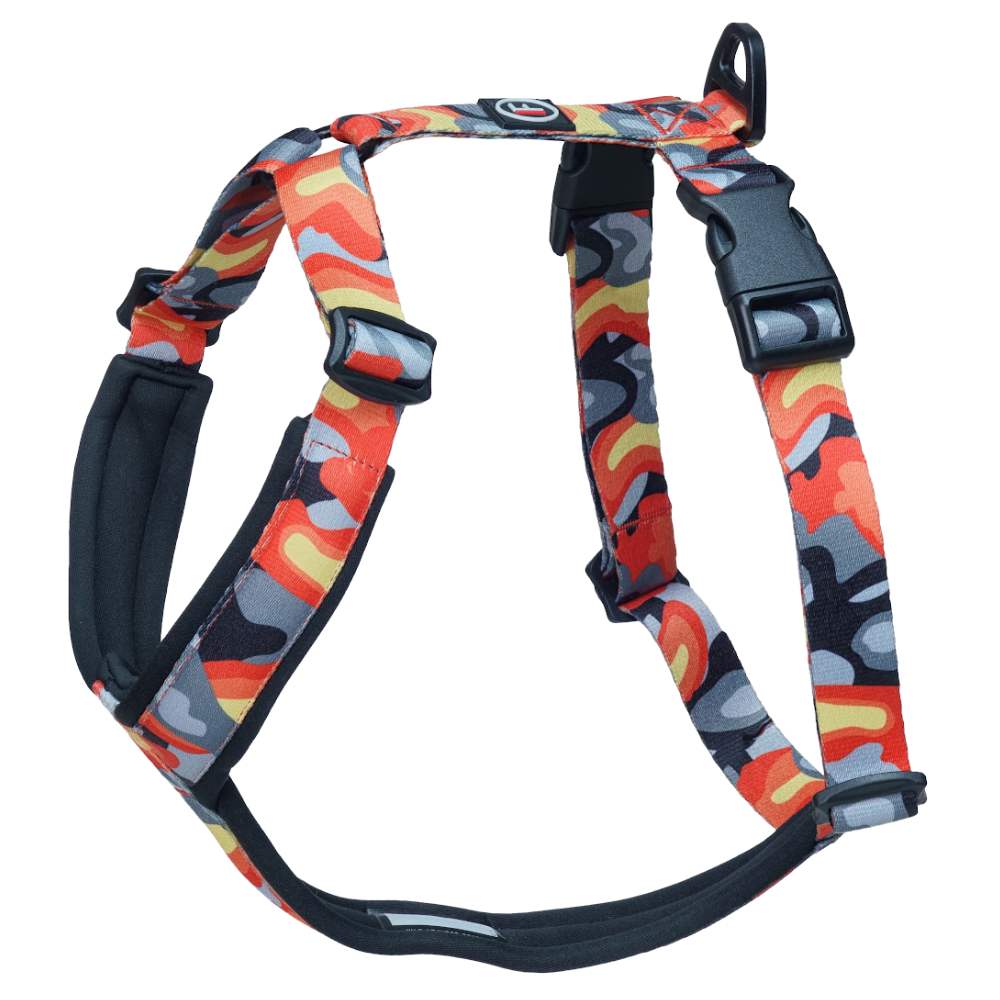 FINNERO CAMOCOLOR Y-valjas on suunniteltu aktiiviseen ulkoiluun ja sopii erinomaisesti koirille, jotka vetävät hihnassa. Ergonominen Y-muoto vähentää niskan ja selän kuormitusta ja tarjoaa paremman hallinnan, samalla kun koira saa liikkua vapaasti.