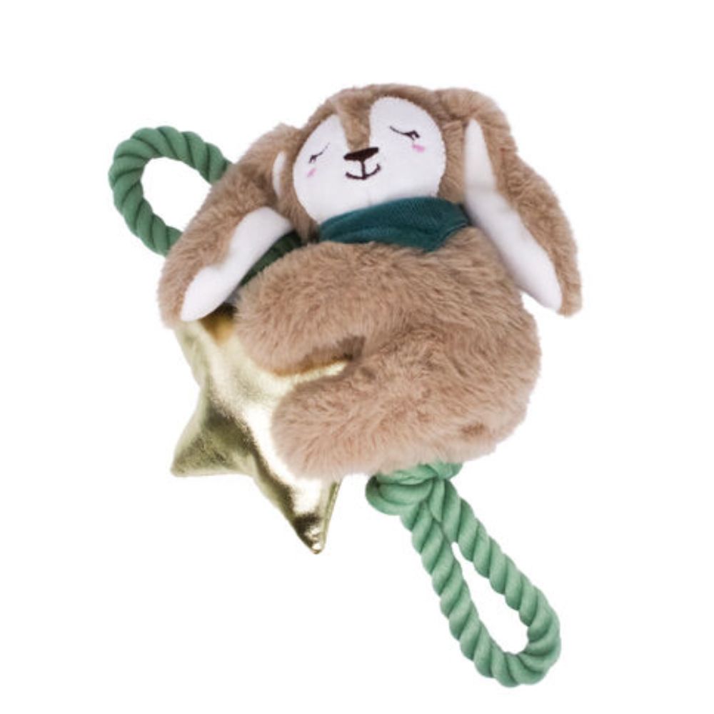Suloinen Happy Pet “Wish Upon a Star” -pupu ja tähti -köysilelu yhdistää pehmeyden ja leikin ilon 🐰⭐