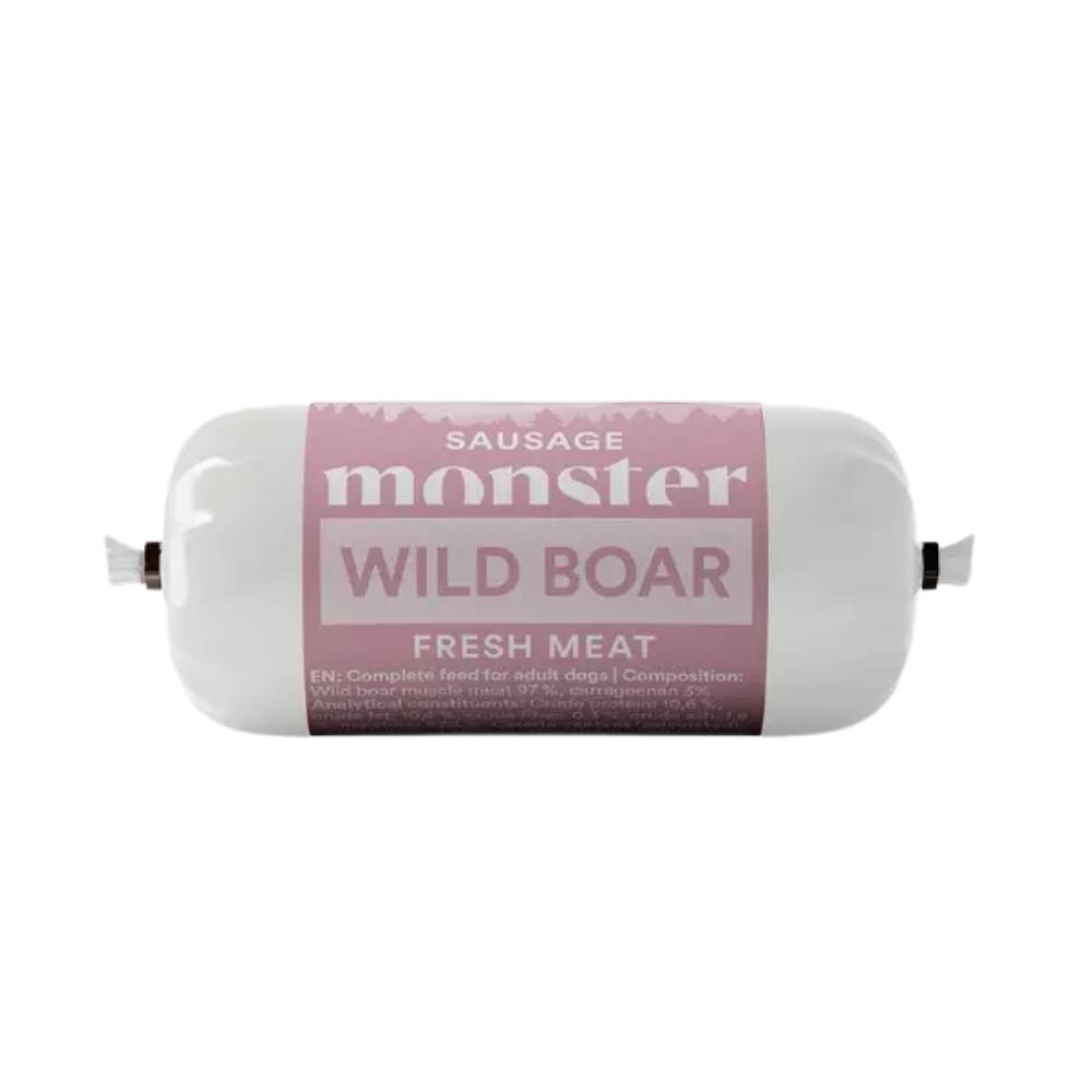 Koostumus: Villisianliha 97 %, kasviperäiset tuotteet, vitamiinit ja kivennäisaineet, hapettumisenestoineet (sitruunahappo), karrageeni.
