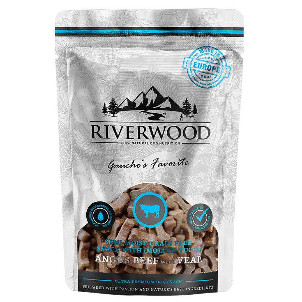 Riverwood Viljattomat makupalat koirille sisältävät ainoastaan 100 % luonnollisia, viljattomia ainesosia. Mehevät, puolikosteat ja viljattomat makupalat luonnon parhaista raaka-aineista. Viljattoman koostumuksensa ansiosta Riverwood-makupalat soveltuvat useimmille herkkävatsaisille tai vilja-allergioista kärsiville koirille. Laadukas ja lihaisa koostumus antaa makupaloille vastustamattoman tuoksun ja maun. Kaikki Riverwood-makupalat sisältävät terveyttä tukevia toiminnallisia ainesosia, kuten helokki- ja lohiöljyä säihkyvälle ja vahvalle turkille.